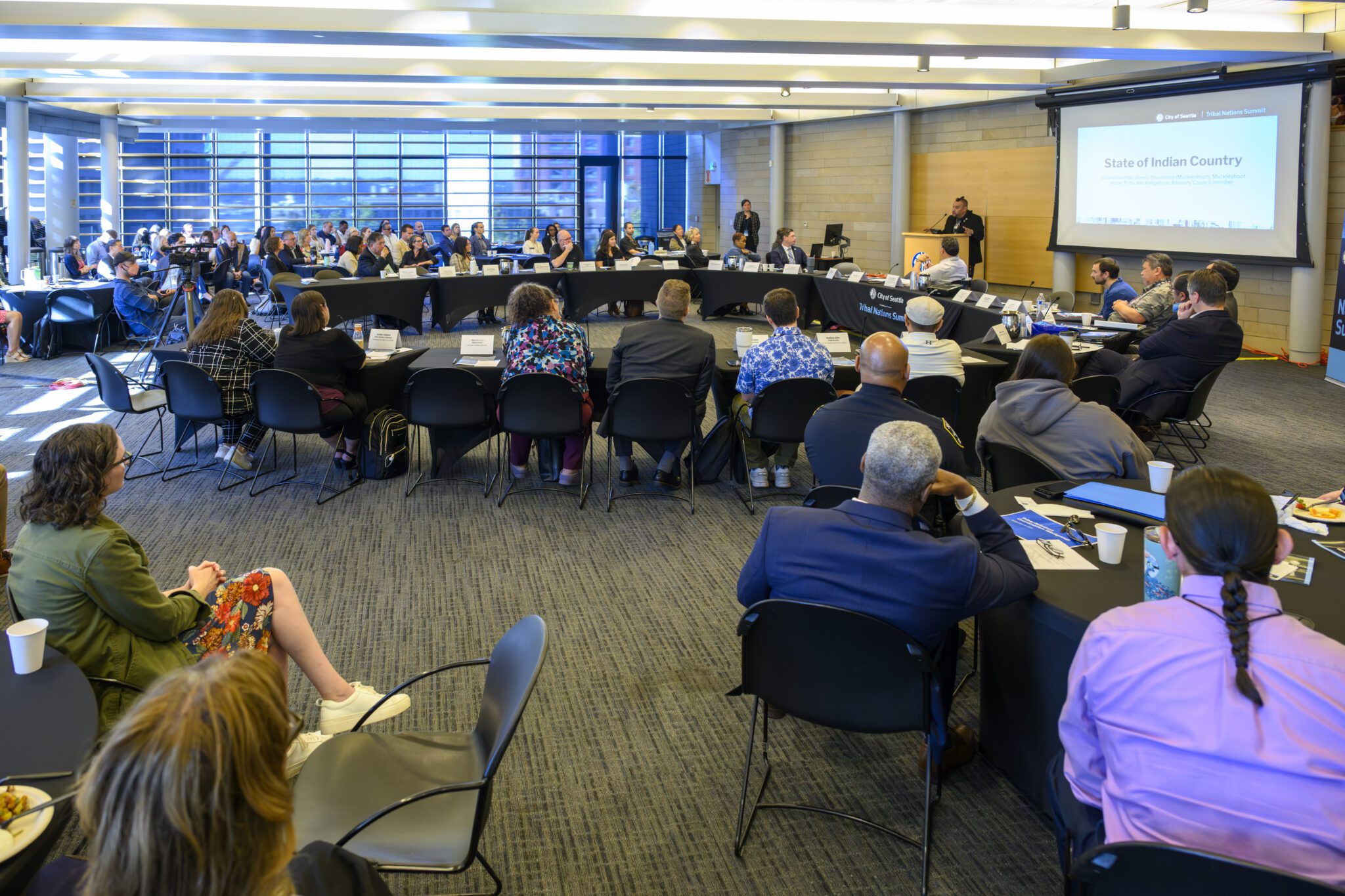 The Summit convened leaders from federally recognized Tribes alongside urban Indian organizational leaders, the Indigenous Advisory Council and City officials representing 24 departments and the legislative branch. The day’s agenda included a listening session with Mayor Harrell and City leadership, as well as moderated discussions shaped by priorities identified by Tribal leaders focused on practical actions to strengthen collaboration across governments and improve outcomes for the more than 46,000 American Indian, Alaska Native, and Native Hawaiian residents who call Seattle home.